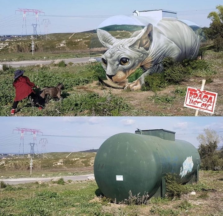 هوميروس Pa Twitter هذا الشاب الفرنسي يدعى Tom Bragado وهو احد فناني الشوارع الذين لهم لمسة خاصة في تحويل الشوارع قام قبل أيام قليلة بتحويل خزان ماء إلى تحفة فنية ثلاثية الأبعاد