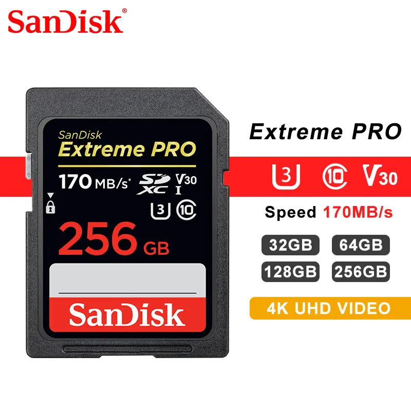 سانديسك بطاقة الذاكرة المتطرفة برو Sdhc Sdxc Sd بطاقة 32 جيجابايت 64 جيجابايت 128 جيجابايت 256 جيجابايت C10 U3 V30 Uhs I كارتاو دي ميموري فلاش بطاقة للكاميرا في بطاقات الذاكرة من الكمبيوتر والمكتب