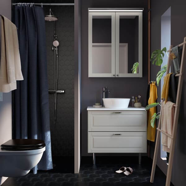 Enhet Tvallen خزانة الحوض مع بابين أبيض حنفية Pilkan Ikea