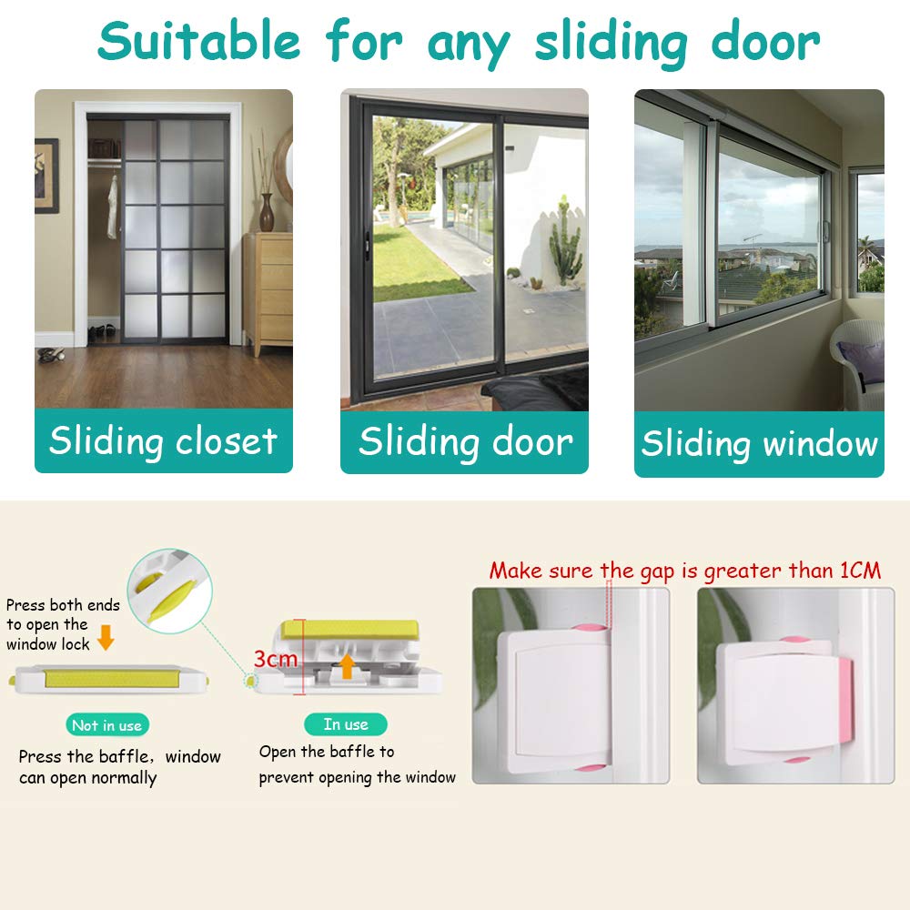 أقفال باب زجاجية منزلقة لسلامة الأطفال سدادة باب نافذة للأمان للخزانة والأجهزة والنوافذ والخزانة وباب الفناء مع شريط لاصق 3m لا مسامير أو حفر 6 عبوات Amazon Ae