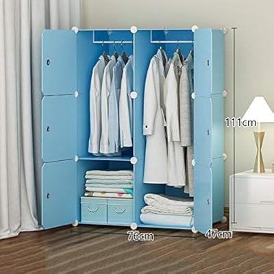خزانة ملابس محمولة من الراتنج منظم خزانة خزانة ملابس خزانة ملابس خزانة ملابس تخزين مكعب مع قضيب تعليق للأطفال بلاستيك ازرق 111x37x147cm 44x15x58inch Amazon Ae