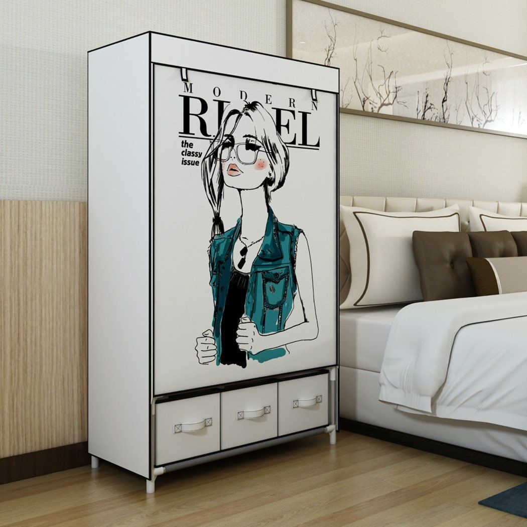 المحمولة الملابس خزانة المتداول الباب خزانة قوي الصدأ واقية المقاوم للصدأ إطار النسيج غطاء التخزين المنظم مع ثلاثة صناديق درج 2020 من Bestangel 411 64ر س موبايل Dhgate