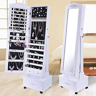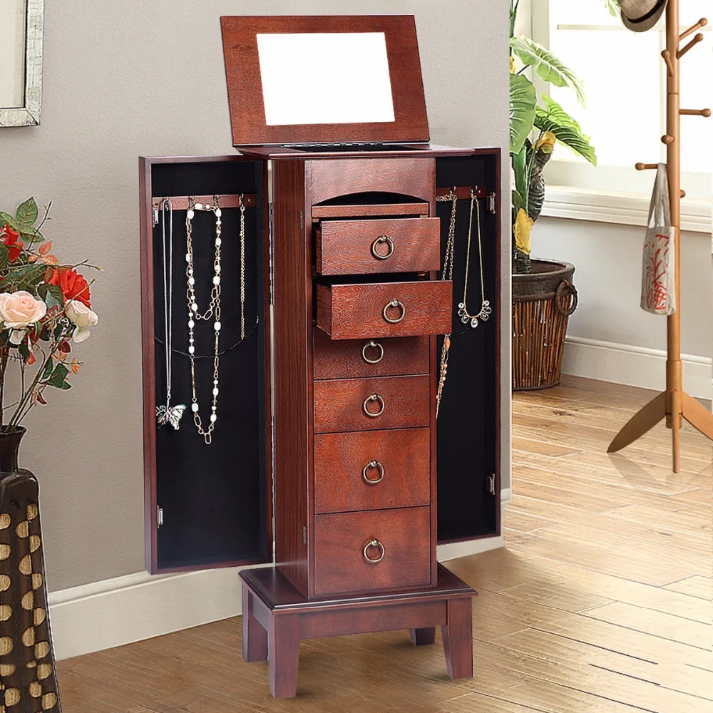 اشترى Goplus الخشب دولاب ملابس مع خزانة مجوهرات بداخله الدولاب صندوق تخزين الصدر حامل سلسلة المنظم الرجعية مجلس الوزراء مع 6 أدراج و أعلى مرايا Hw52432 رخيص