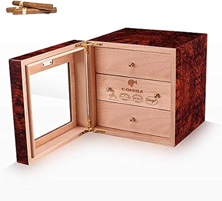 سيجار مرطب الكحول الطبيعي خشب الأرز البيانو المرسومة السيجار خزانة الرطوبة تنفس ثلاث طبقات درج تخزين الرطوبة الخارجية الرطوبة 50 سعة Amazon Ae