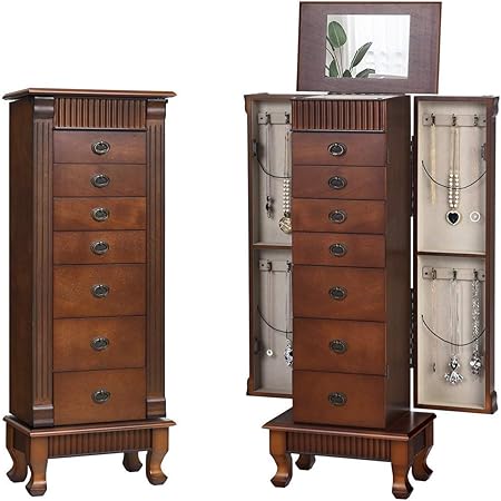 خزانة ادراج من هوم جيكس خزانة منظمة مقسمة من الاعلى ومزودة بمراة للمكياج خزانة كبيرة قائمة للمجوهرات بها 7 ادراج 2 باب متارجح 12خطاف للسلاسل كما هو موضح في الصورة اشتري اون