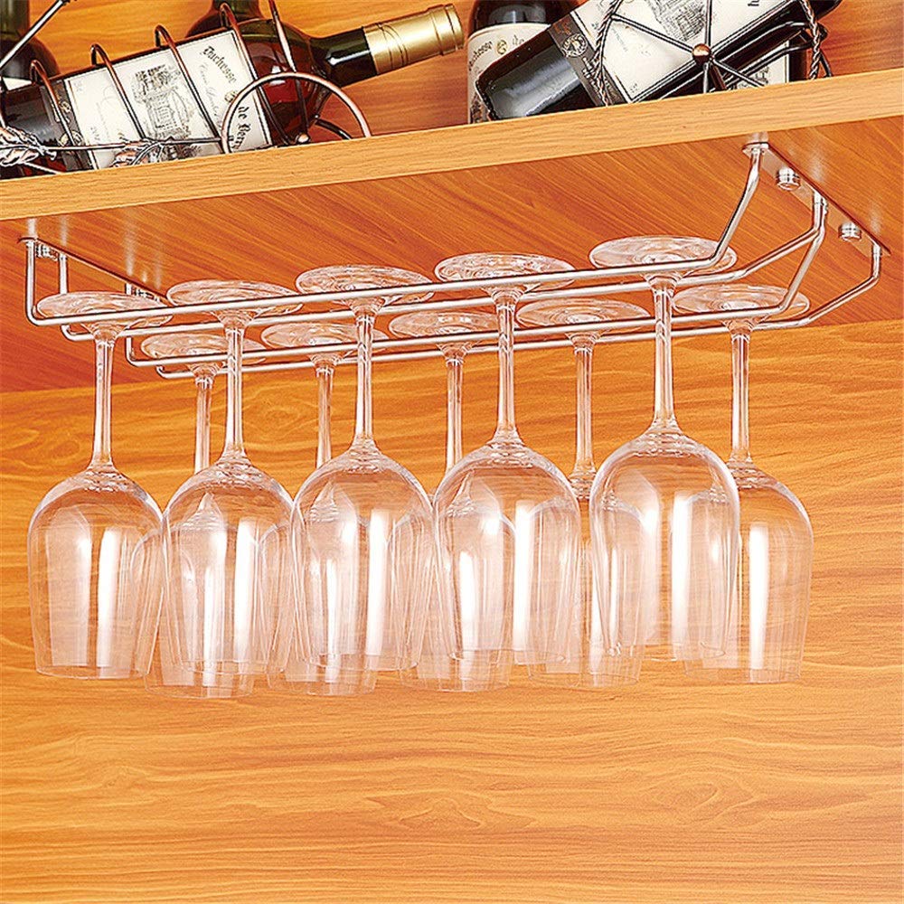 المطبخ النبيذ الزجاج رف 2 صفوف معدنية تحت خزانة جذع رف حامل النبيذ الزجاج رف الفولاذ المقاوم للصدأ ميل النبيذ نظارات تخزين المطبخ بار النبيذ الزجاج شماعات المنظم الفضة 35 سنتيمتر 2