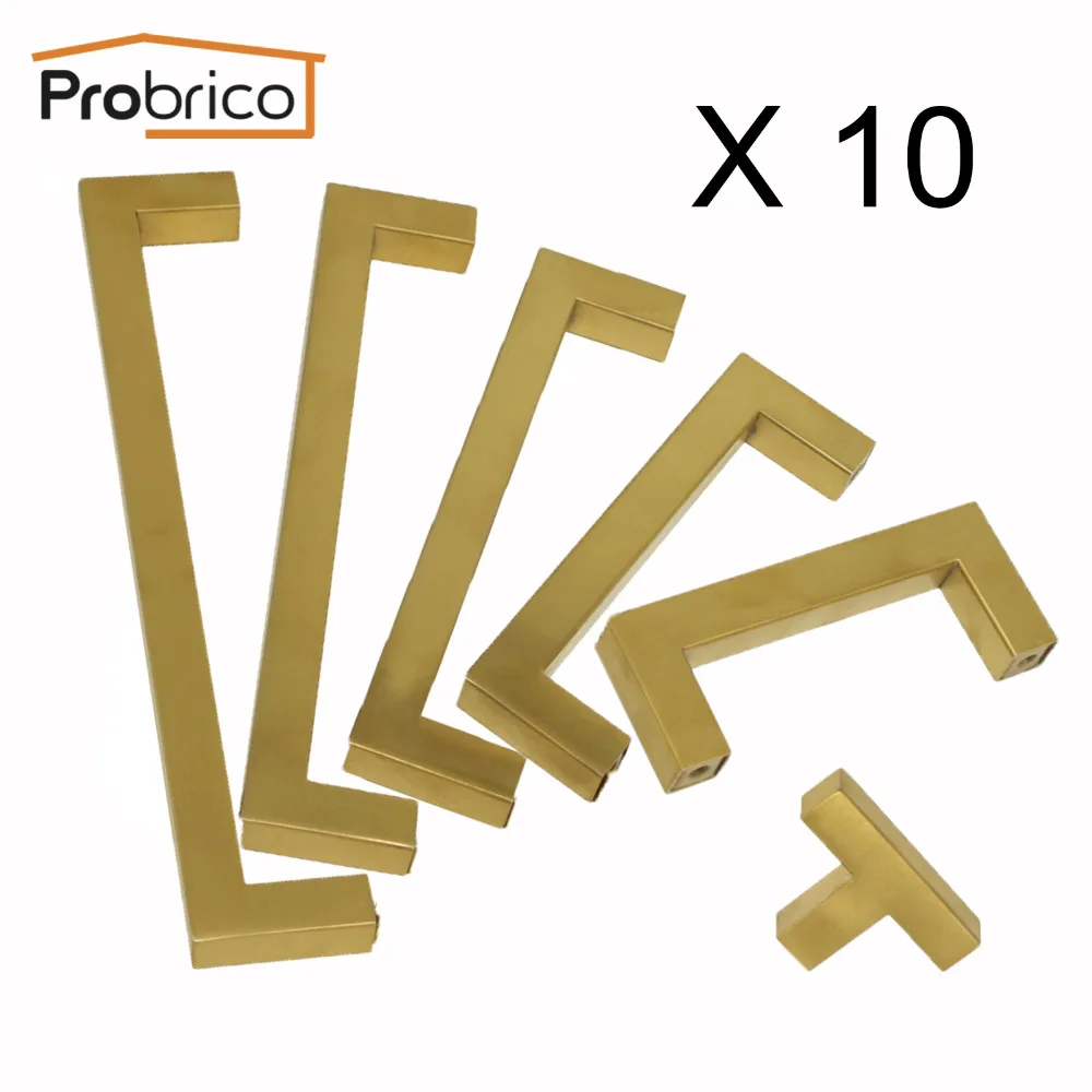 Probrico 10 حزم الذهبي النحاس مقابض للخزانة مضمد المطبخ تسحب خزانة دولاب المقابض الفولاذ المقاوم للصدأ مربع الأجهزة 12 مللي متر في مقابض الباب من تجميل المنزل على Wikilegia Info Store