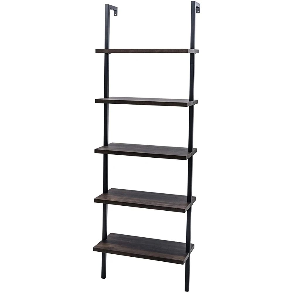 الولايات المتحدة مستودع 5 الرف الخشب سلم خزانة الكتب مع الإطار المعدني الصناعية 5 الطبقة الحديثة رفوف متدرجة أرفف خشب الجوز الداكن رفوف الديكور Naoko