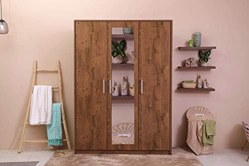 خزانة ملابس خشبية 3 أبواب مع مرآة 200 150 55 سم بني 59 كغم Amazon Ae
