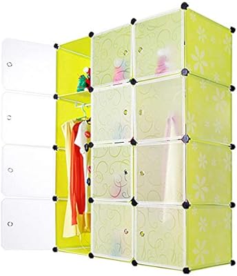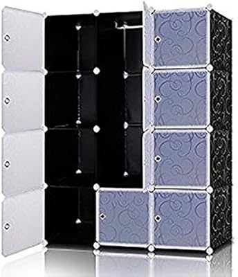خزانة وحدات بلاستيكية محمولة 12 مكعب رف مع أبواب تخزين للملابس والأحذية والألعاب والكتب لوحة منقوشة تركيب 111x47x145 سم Amazon Ae