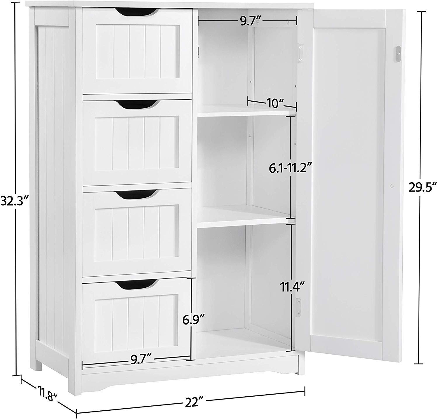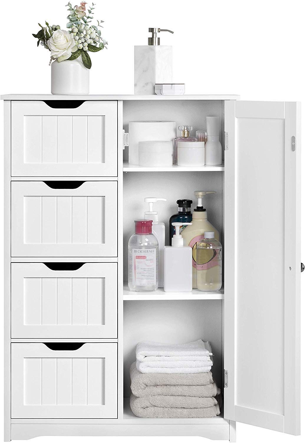 Mqq خزانة تخزين أرضية مقاومة للماء وخزان أرضيات الحمام الخشبية خزانة تنظيم جانبية للتخزين مع 4 أدراج و1 خزانة Amazon Ae