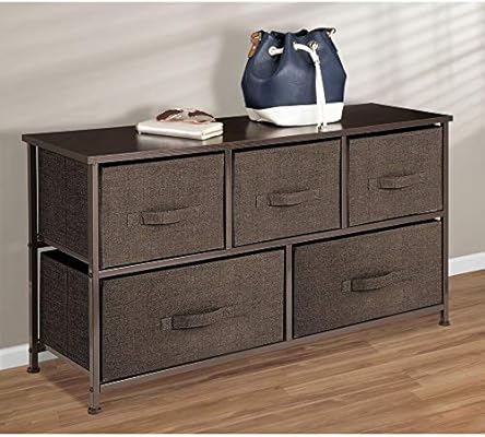 برج تخزين خزانة ملابس عريض جد ا من إم ديزاين إطار صلب متين سطح خشبي صناديق قماشية سهلة السحب وحدة منظم لغرفة النوم والمدخل والخزانات طباعة مزخرفة 5 أدراج