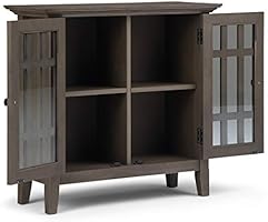 خزانة أدوات تخزين منخفضة ريفية من الخشب الصلب مقاس 81 28 سم من سيمبلي هوم بيد فورد بلون رمادي مع بابين من الزجاج المقوى ورففين قابلين للتعديل اشتري اون لاين بأفضل الاسعار في