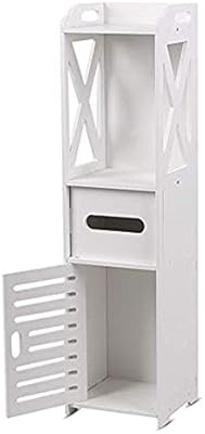 خزانة زاوية صغيرة لأرض الحمام مع باب ورفوف ويمكن استخدامها كخزانة تواليت نحيفة لأدوات الزينة أو منظم ضيق لمغسلة الحمام لتخزين المناشف مع رف لحامل الأوراق لون أبيض Amazon Ae