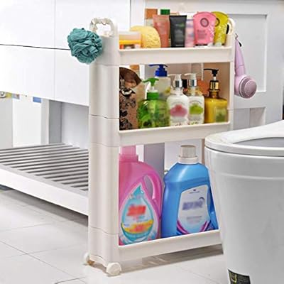 عربة تخزين نحيفة للحمام والمطبخ من 3 طوابق منظم مساحة محدودة رف منزلق للخارج خزانة برج منظم وحدة أرفف متنقلة سعة كبيرة أبيض Amazon Ae