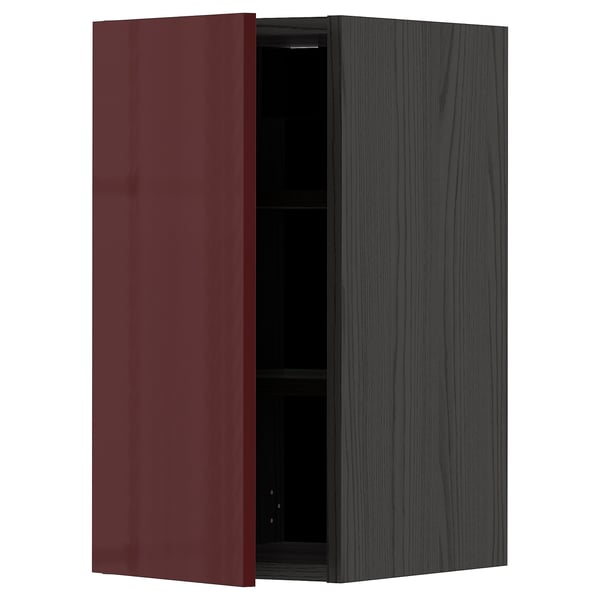 Metod خزانة حائط مع رفوف أسود Kallarp لامع أحمر بني غامق Ikea