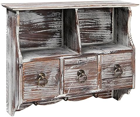 منظم جداري من الخشب الريفي من شركة ماي جيفت رف خزانة حائط مع أدراج وخطاطيف معدنية Amazon Ae