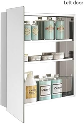 أضواء من الفولاذ المقاوم للصدأ باب واحد مرآة الحمام خزانة صندوق مرآة الحمام خزانة حائط مخفية للخزانة مثبتة على الحائط مقاومة للرطوبة مرآة فضية عالية الوضوح Amazon Ae