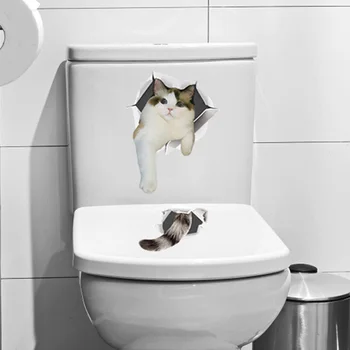 لطيف القط هريرة ثلاثية الأبعاد ملصقات جدار الحمام خزانة المنزل الديكور البلاستيكية ملصقات فنية جدارية مقاوم للماء المرحاض ملصق خلفية Leather Bag