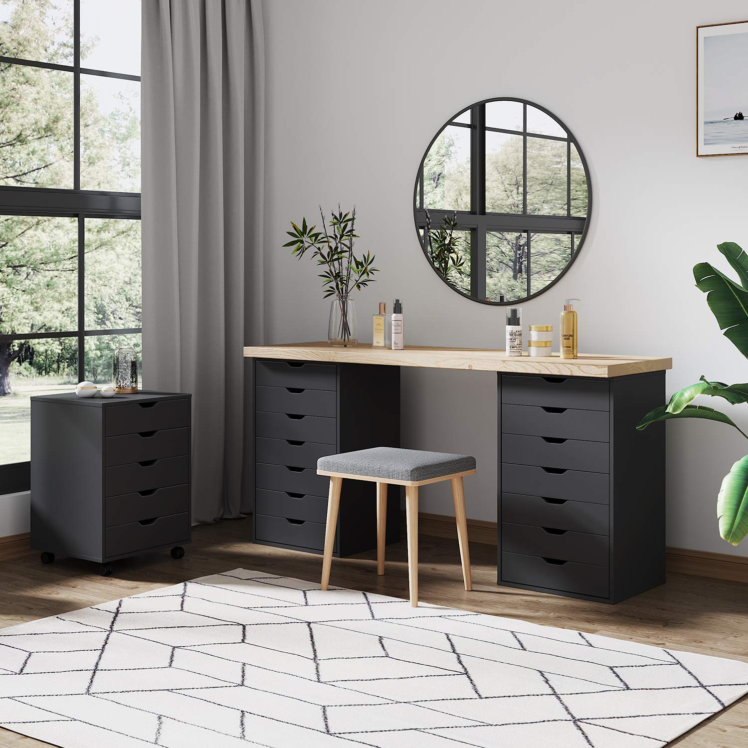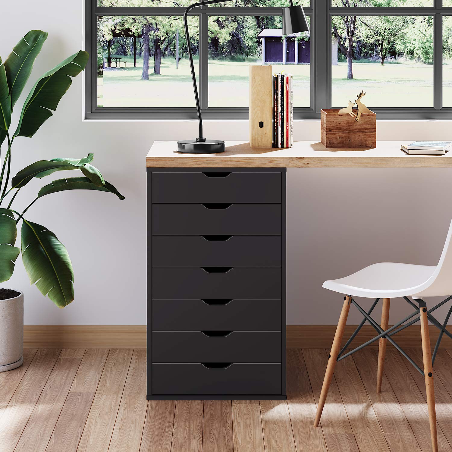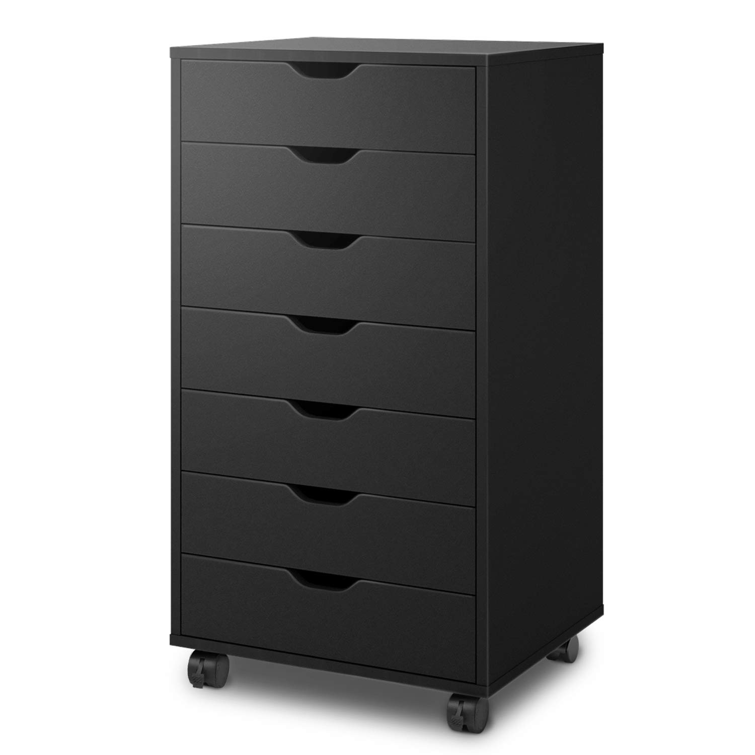 خزانة خزانة خزانة ذات 7 أدراج من ديفايس خزانة خزانة خزانة ملابس خشبية مزودة بعجلات لون أسود Amazon Ae