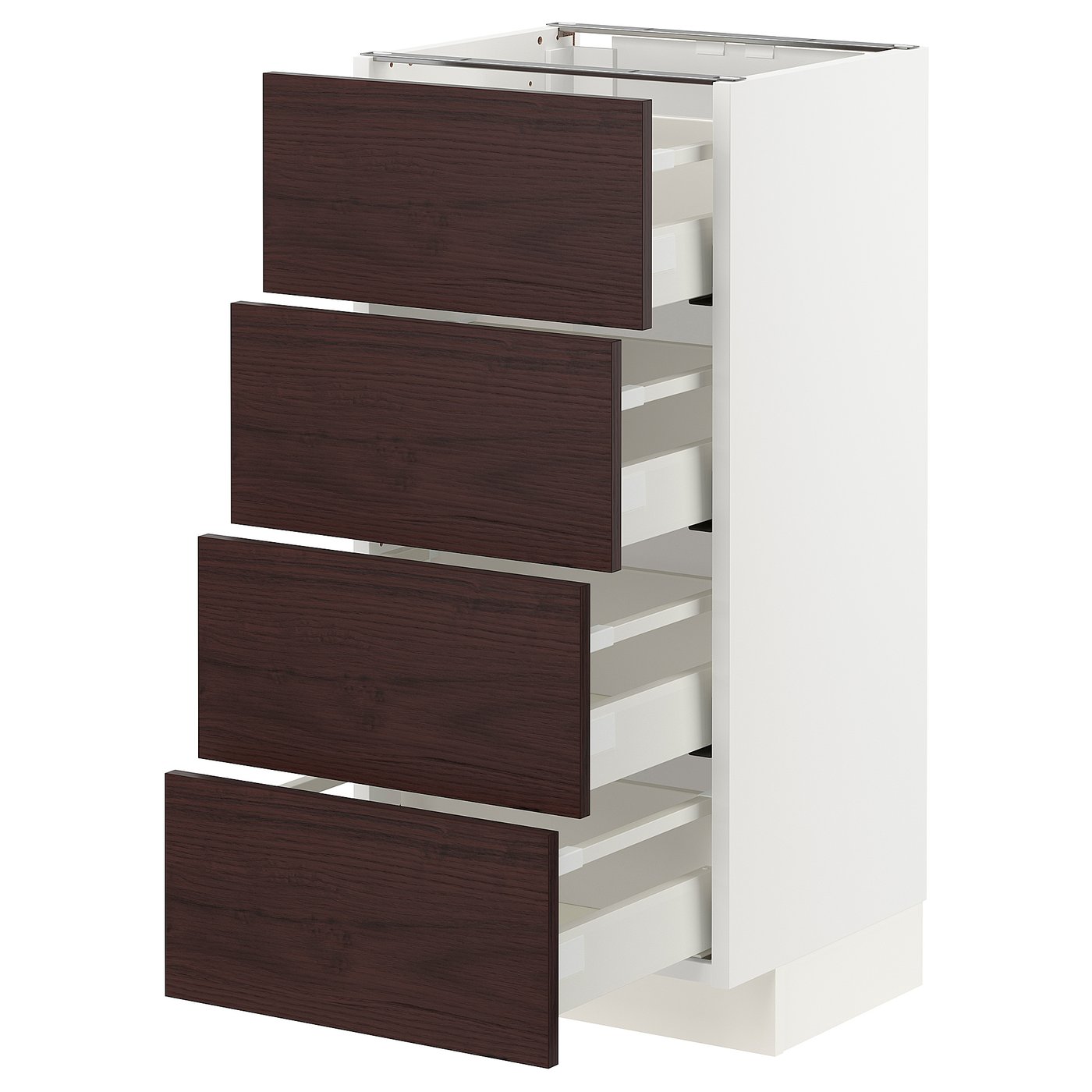 Metod Maximera خزانة قاعدة 4 واجهات 4 أدراج متوسطة أبيض Askersund شكل خشب دردار بني داكن ايكيا