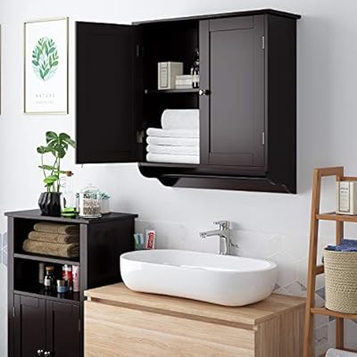 خزانة الحائط للحمام من Homfa فوق مساحة المرحاض تخزين تخزين مساحة المرحاض خزانة الدواء المطبخ خزانة باب مزدوجة مع رف قابل للتعديل وبار المناشف بني غامق اشتري اون لاين بأفضل الاسعار