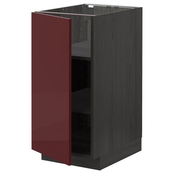 خزانة قاعدة مع رفوف Metod أسود Kallarp أحمر داكن بني بالغ اللمعان ايكيا