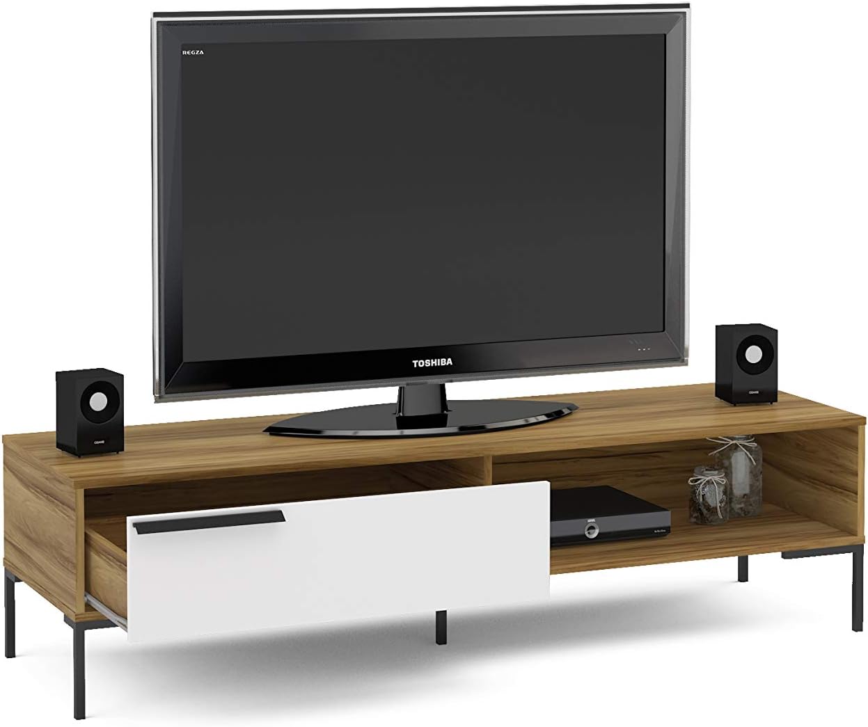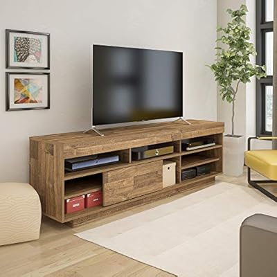 طاولة تلفزيون 60 بوصة بني صنوبر مع اوف وايت W 160 سم X D 34 سم X ارتفاع 65 سم Amazon Ae